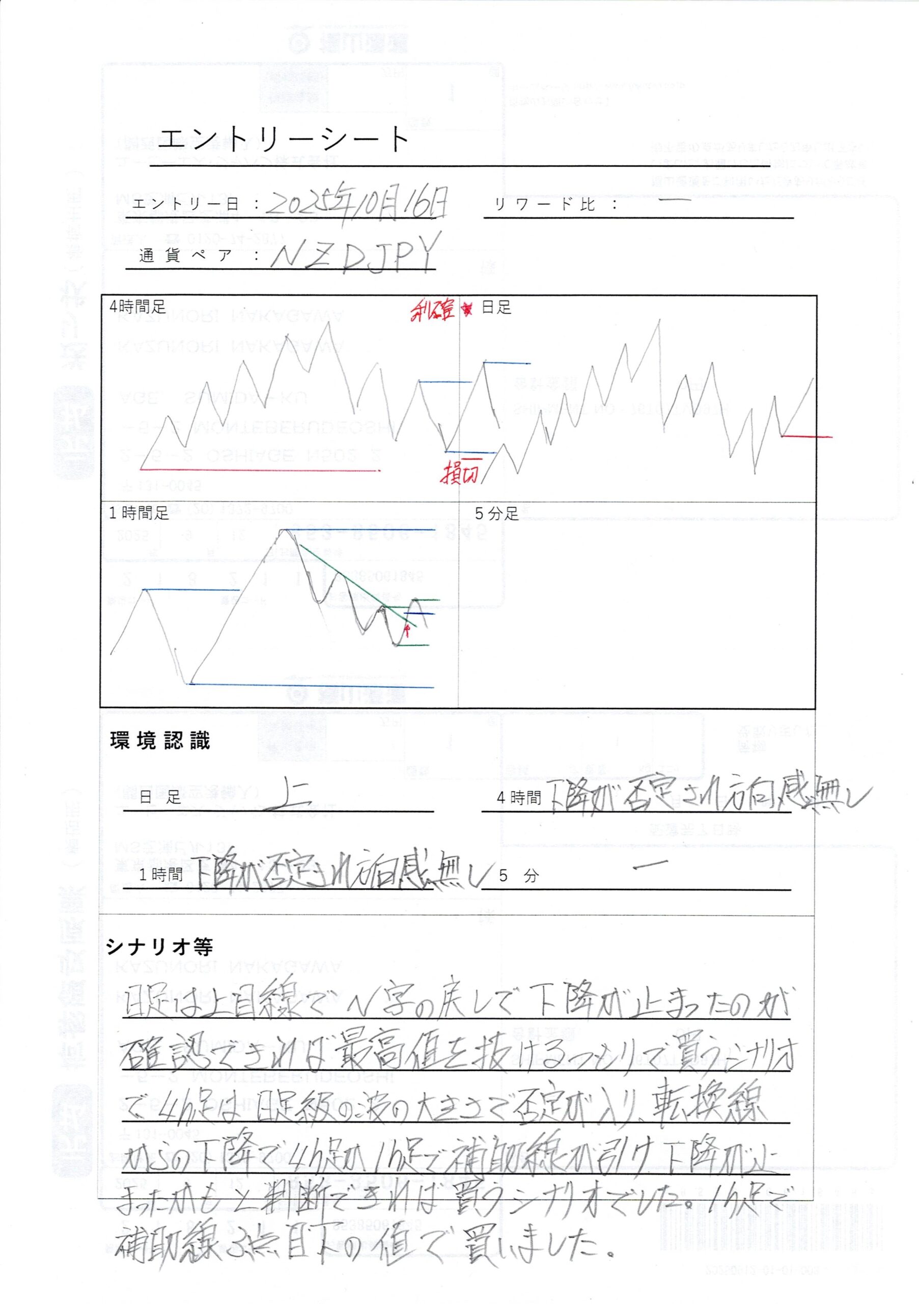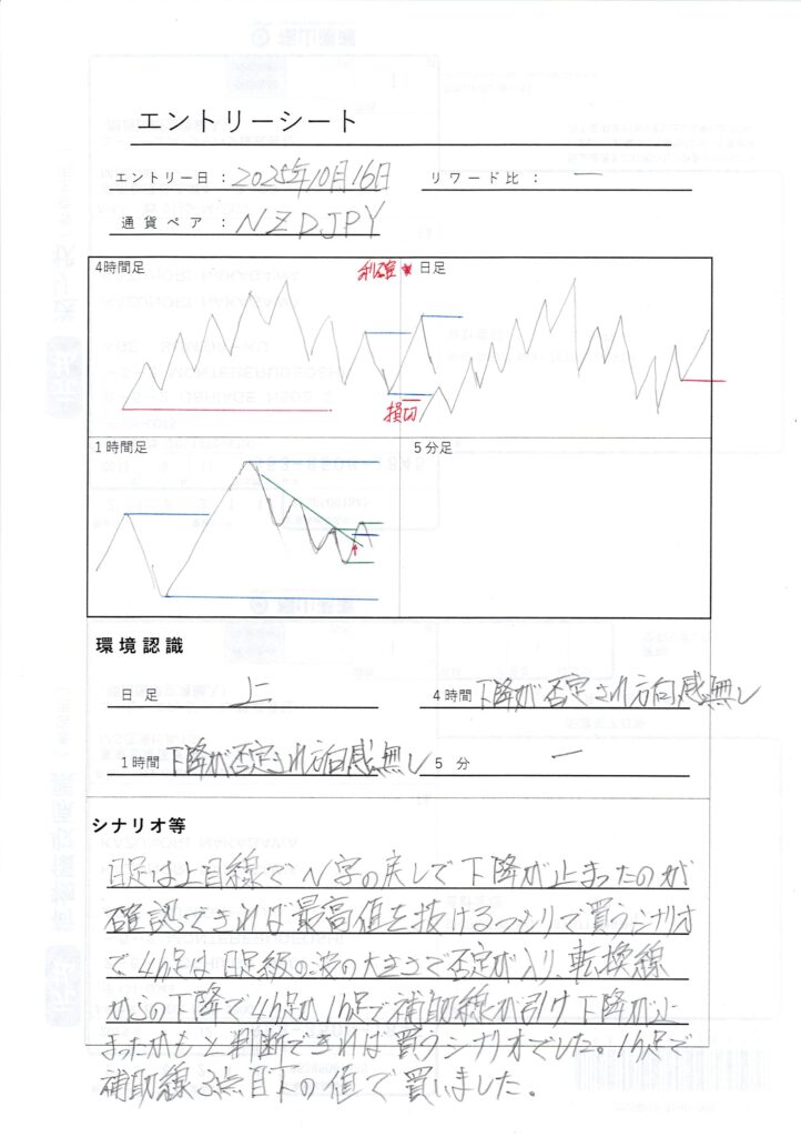 10月26日(木)NZDJPYでエントリーをしましたので エントリーシートを作成しました。