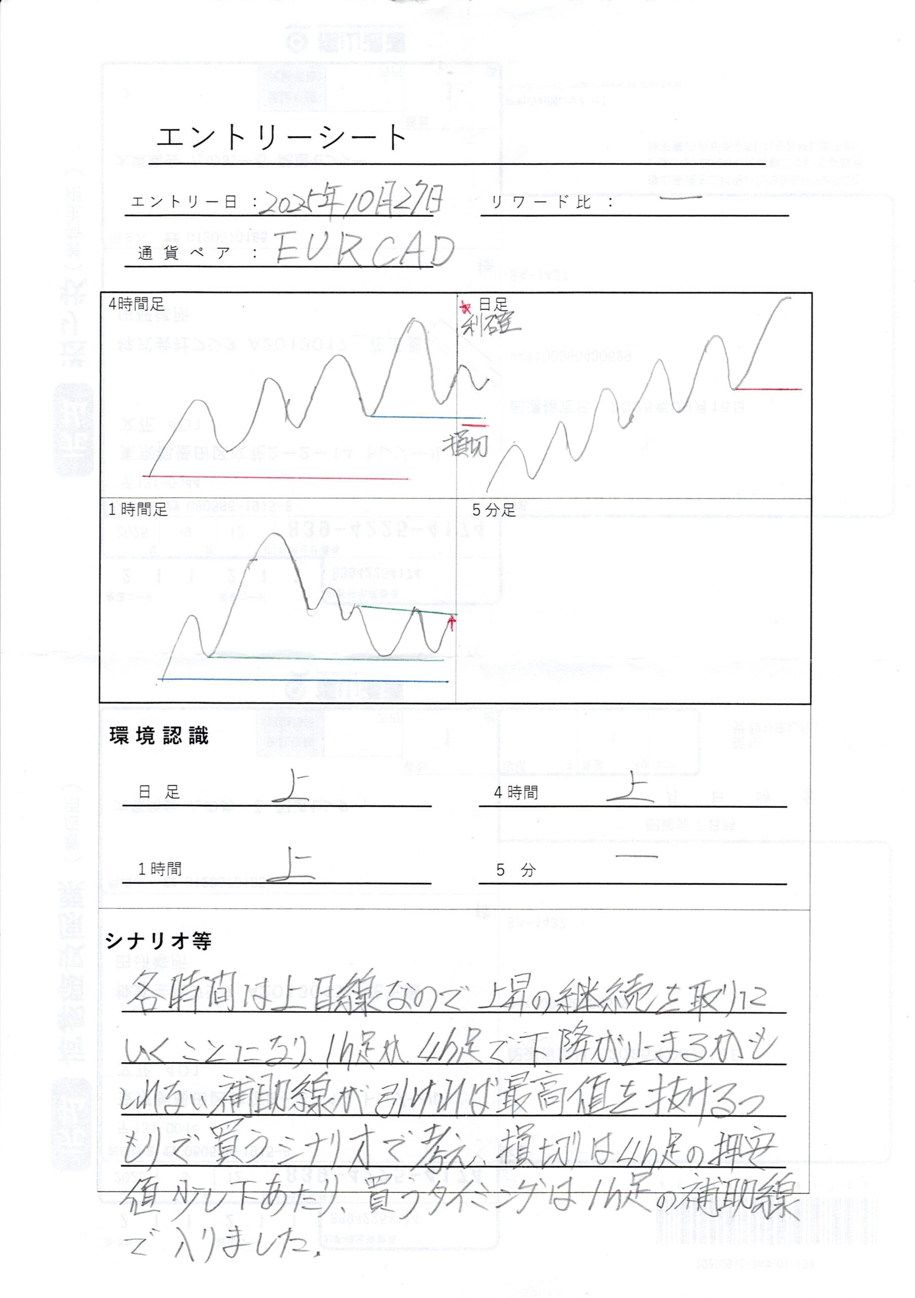 10月27日にEURCADになりますが買いでエントリーを しましたのでエントリーシートを作成しました。