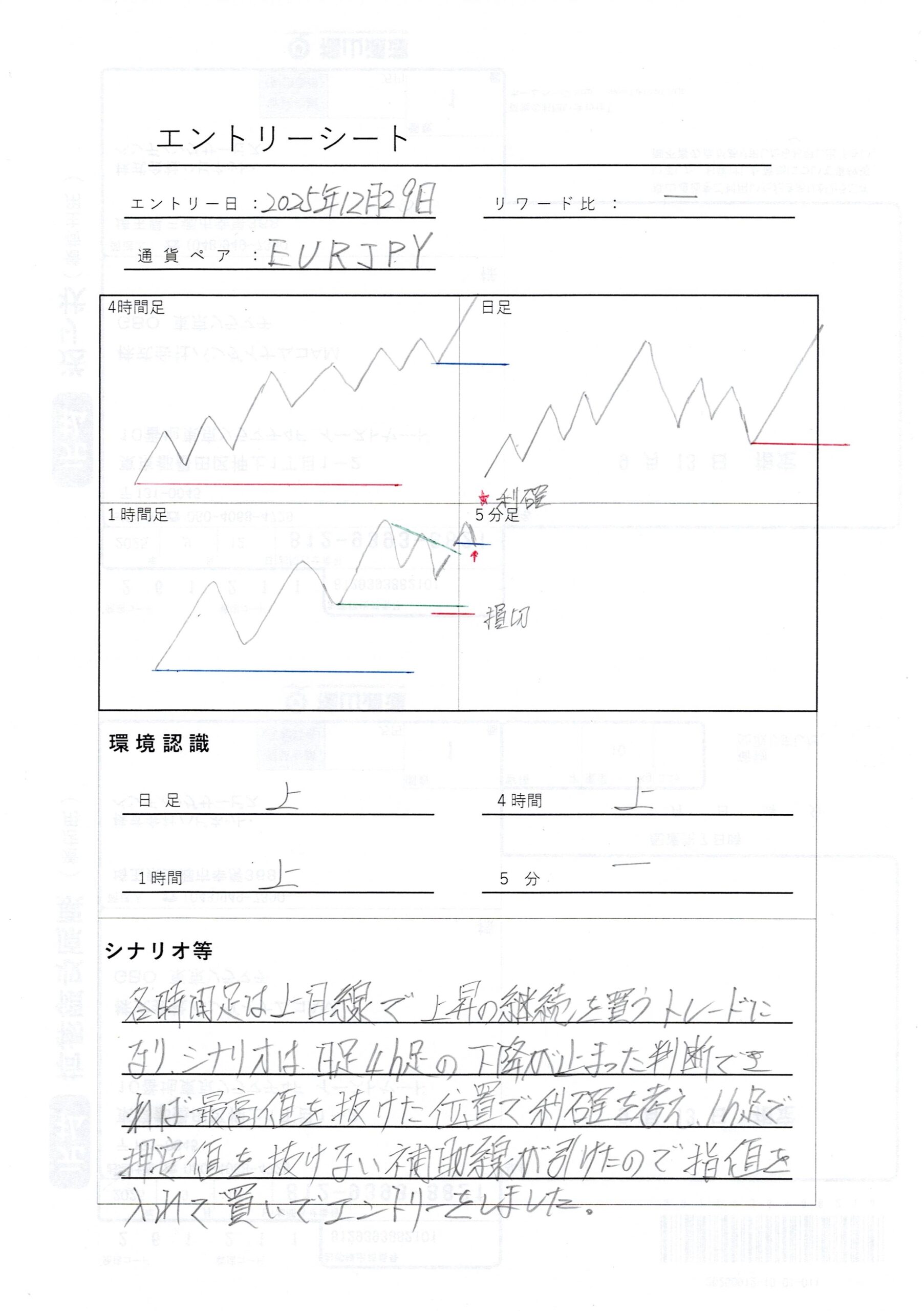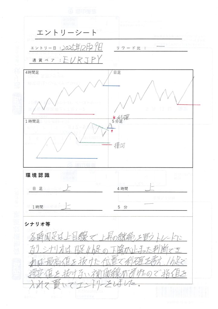 12月29日(月)EURJPYになりますが買いでエントリーを