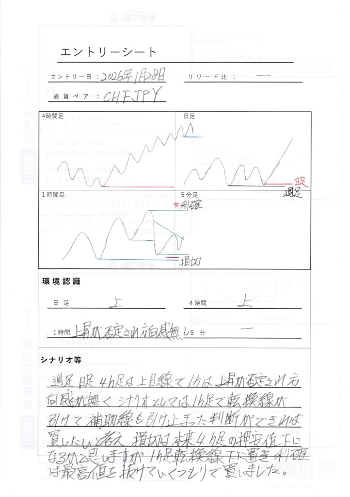 令和8年1月28日(水)になりますがCHFJPYで買いの